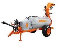 Jacto's J1000CHT Cannon Sprayer is designed for wide swath spraying applications. It uses the same fan and outlet application assembly found on the proven 3-point hitch mounted J400CHT. The J400CHT application assembly has been engineered to fit on our popular, 265 gallon capacity low profile tracking axle chassis. The tracking axle allows for greater maneuverability and tighter turns. Letting the trailer chassis follow within the track of the tractor. The J1000CHT comes standard with hydraulic control of the outlet duct assembly for rotation and elevation and in-cab electric on/off spray controls from the factory. Under the correct crop and wind conditions, the J1000CHT has an effective spray swath up to 80 feet wide. Popular applications include highbush blueberries, cane berries, pumpkins, melons, container nurseries, vegetables, Christmas trees, nursery trees and pasture control. Non crop uses are for fly and odor control in livestock and landfill operations. Optional duct extension kit. In crops such as highbush blueberries and certain varieties of sweet corn, it may be desirable to add the 24 inch duct extension. This extension mounts to the top of the fan housing before the outlet duct to raise the whole assembly. This higher mount allows you to achieve proper spray angles across, down and through the crop. The kit comes complete with all mounting hardware and hose extensions and can be added to any new or in operation J1000CHT series sprayer. |