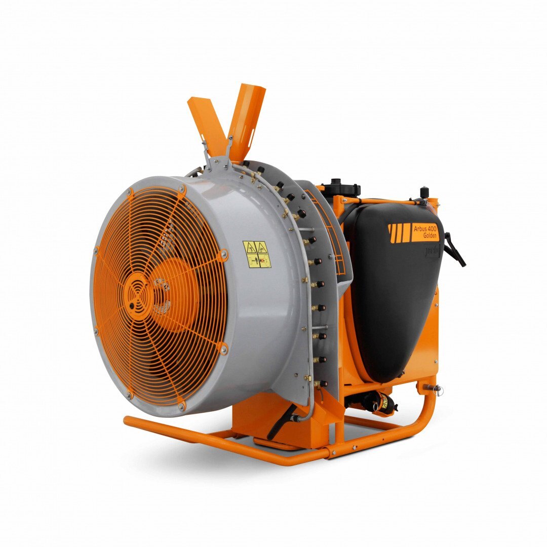The A400-850 Golden utilizes our 33 inch two-port fan and is the perfect solution for hops, mature orchards, citrus or tall trees up to 25 feet in height and crops with very dense canopies.