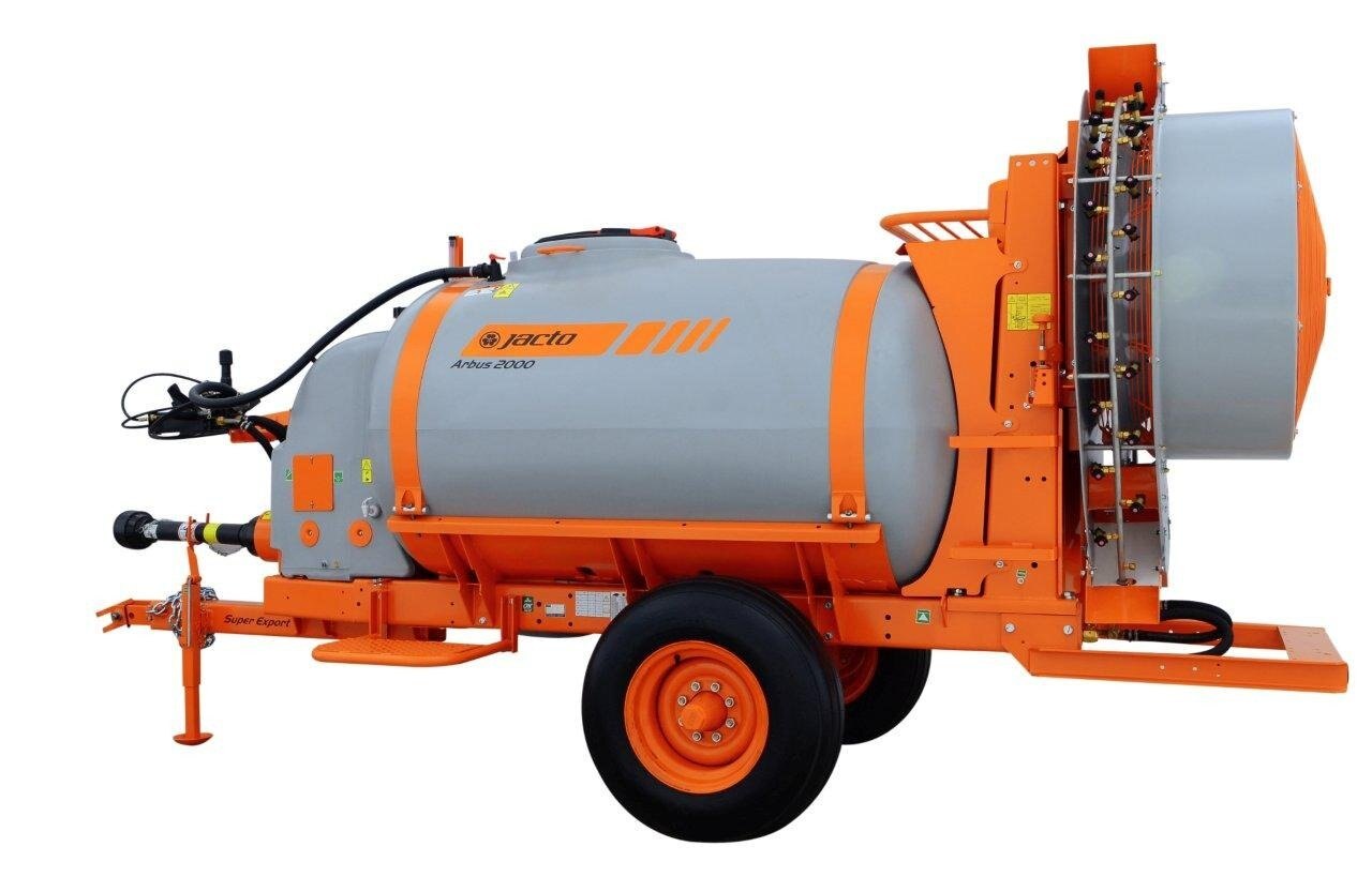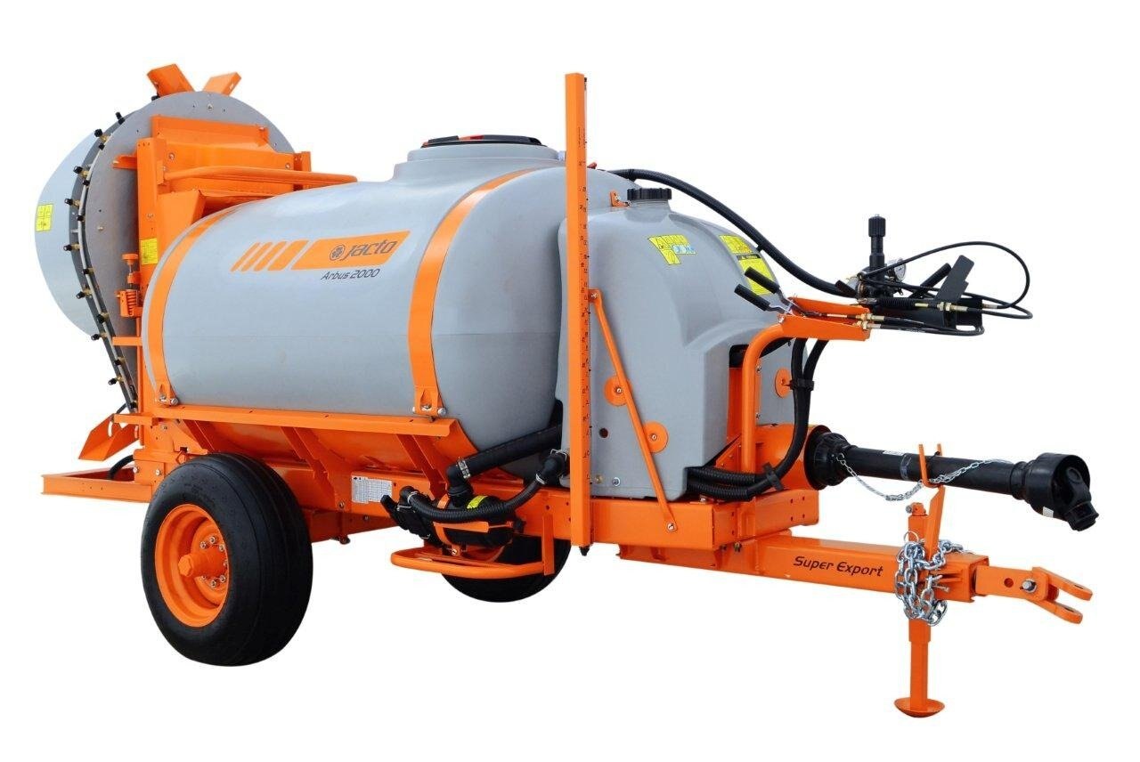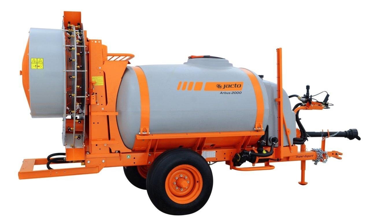 The Super Export EL features a 550 gallon high density poly tank, stainless chemical circuit tubing, 18 adjustable double flip over anti-drip nozzle holders with 36 ceramic nozzles, Jacto 50 GPM high pressure ceramic cylinder piston pump, CV-PTO shaft for tight turns without needed a heavy specialty hitch, adjustable height axle, chemical, circuit and freshwater rinse tanks and 11L-15 flotation tires. The Super Export EL also comes standard with electric spray valves with an in-cab controller combined with only needing an 80 hp or larger tractor, the Super Export provides excellent value for growers with large groves and orchards. |