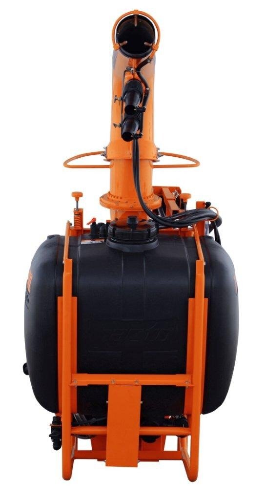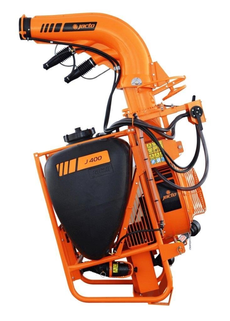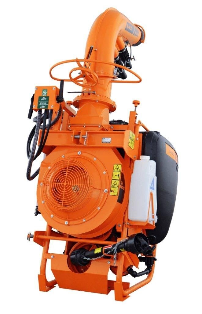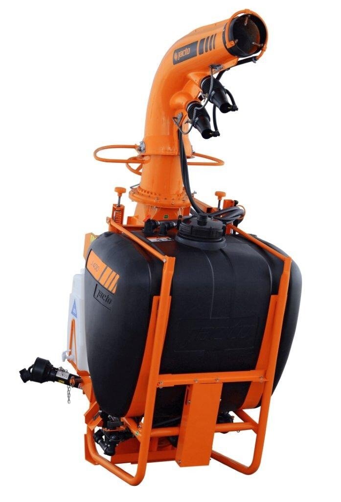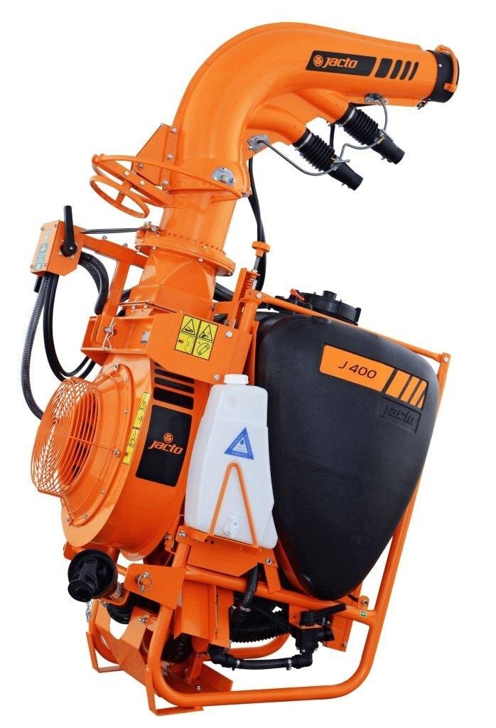 The J400 series has the same 105 gallon capacity and Jacto centrifugal pump as the AJ401, but with a larger fan with higher CFM and discharge speeds. A completely different outlet duct assembly with main outlet and two smaller directional intermediate ducts lets you achieve spray swaths up to 80 feet, depending on the crop and wind conditions. The specially designed Cannon head is easy to operate and can be adjusted horizontally up to 290 degrees and vertically by 34 degrees. Three versions are available, the standard J400 with manually adjusted outlet duct, the J400CHT with hydraulic duct control and J400CHT/EL with electric control valve from the factory. If you choose the J400CHT or J400CHT/EL models you must have two open sets of remotes for the hydraulic hoses to be plugged into. Popular applications are vegetables, especially pumpkins and sweet corn, blueberries, Christmas trees as well as container and tree nurseries. |