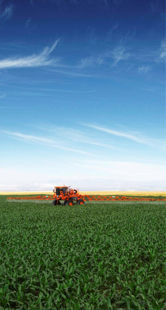 With 22685.5 lb (empty machine) when equipped with a 36 m boom, it allows to operate with low pressure on the tires, reducing soil compaction and increasing crop productivity, all with low fuel consumption; less weight for traction of the equipment. |