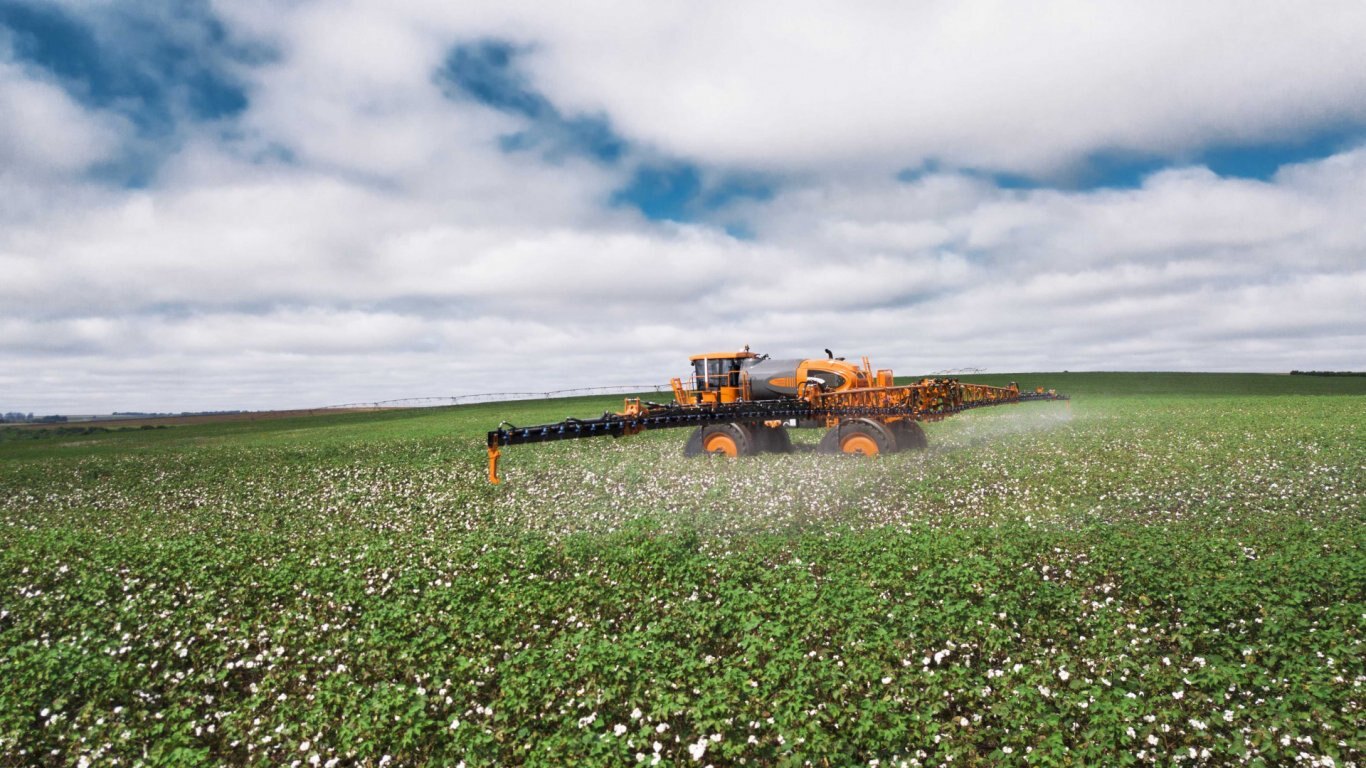 With 23391 lb (empty machine) when equipped with a 118 ft boom, it allows to operate with low pressure on the tires, reducing soil compaction and increasing crop productivity, all with low fuel consumption; less weight for traction of the equipment. |