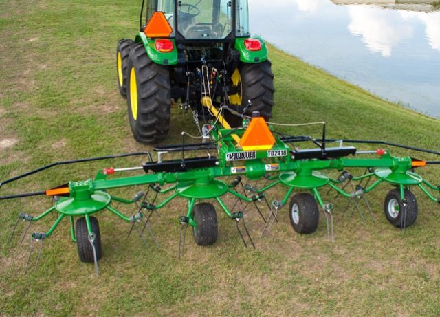 With two efficient models to choose from, there's a Frontier Hay Tedder just right for you. The TD2418 has four rotors with seven tine arms each for a maximum tedding width of 18-feet. Or to cover more ground, go with the TD2427, featuring six rotors with seven tine arms each for a tedding width of 27-feet.