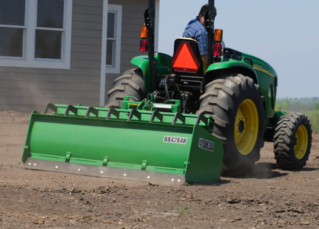 The Frontier 41 and 42 Series Hydraulic Box Blades are available in working widths ranging from 60 to 96 inches, and are compatible with tractors and backhoe loaders of 25 to 90 horsepower with a Category 1 or 2 three-point hitch.