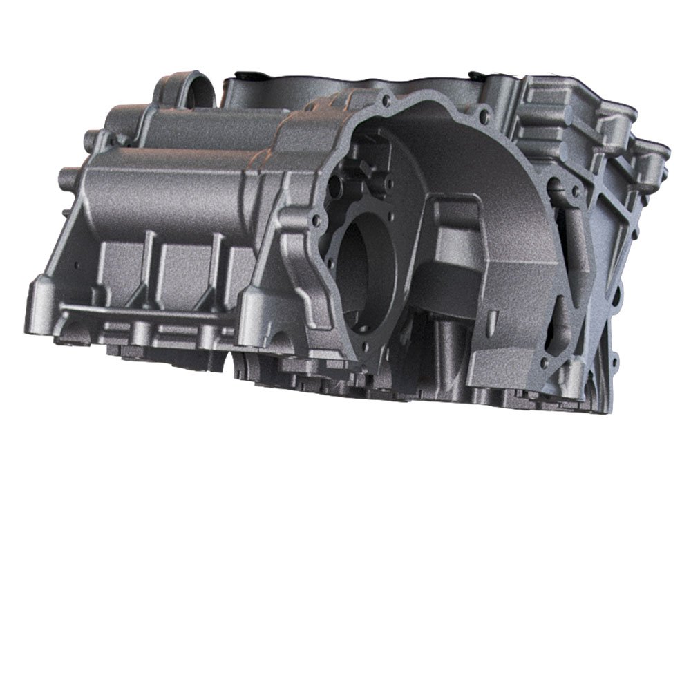 New horizontally split crankcases allow for the engine's increased bore but remain high-pressure cast from aluminum. This allows for reduced wall thickness, weight savings and optimized surfaces, offering the engine designers more freedom in their design. The open-deck cylinders are integrated into the crankcase. |