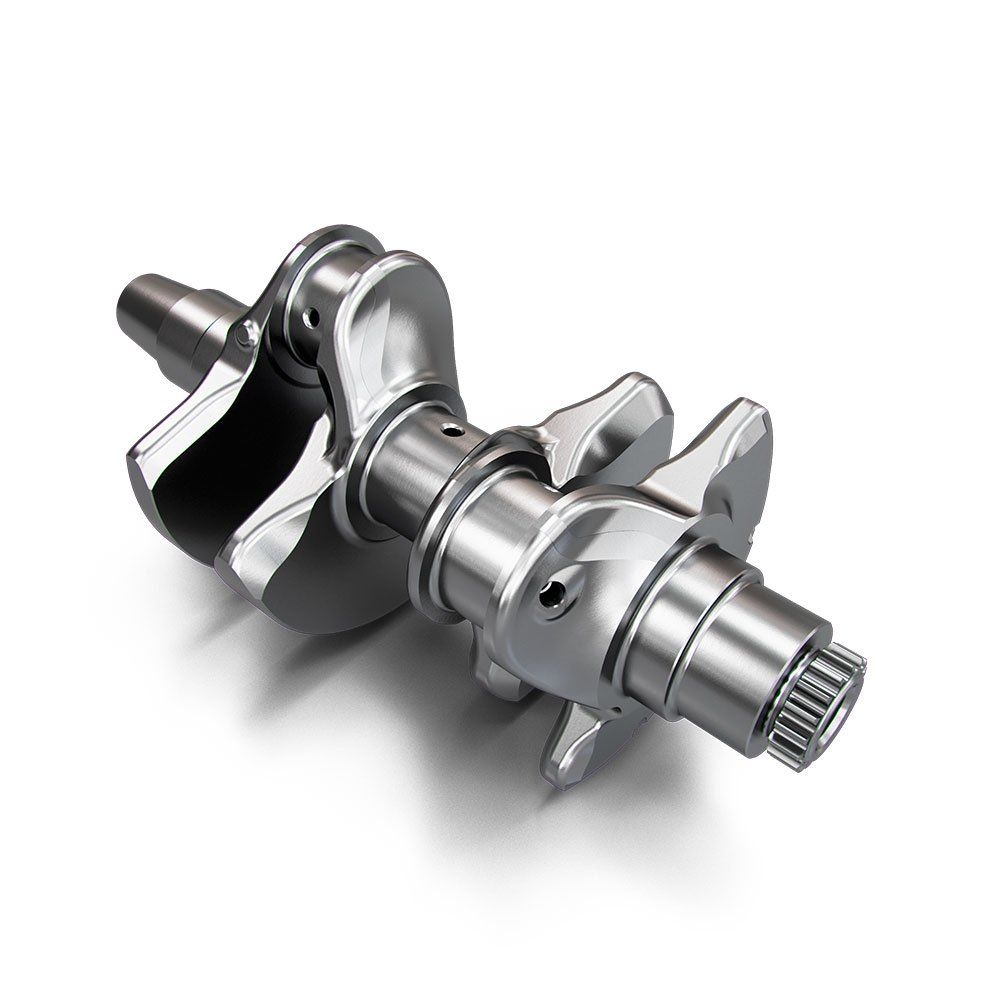 All-new conrods feature a trapezoidal V-shape top-end which reduces oscillating masses and supports higher the revvy nature and higher power output of the motor. The top-end bearing is also fitted with a bronze conrod bearing instead of a DLC coated top-end for longevity. |