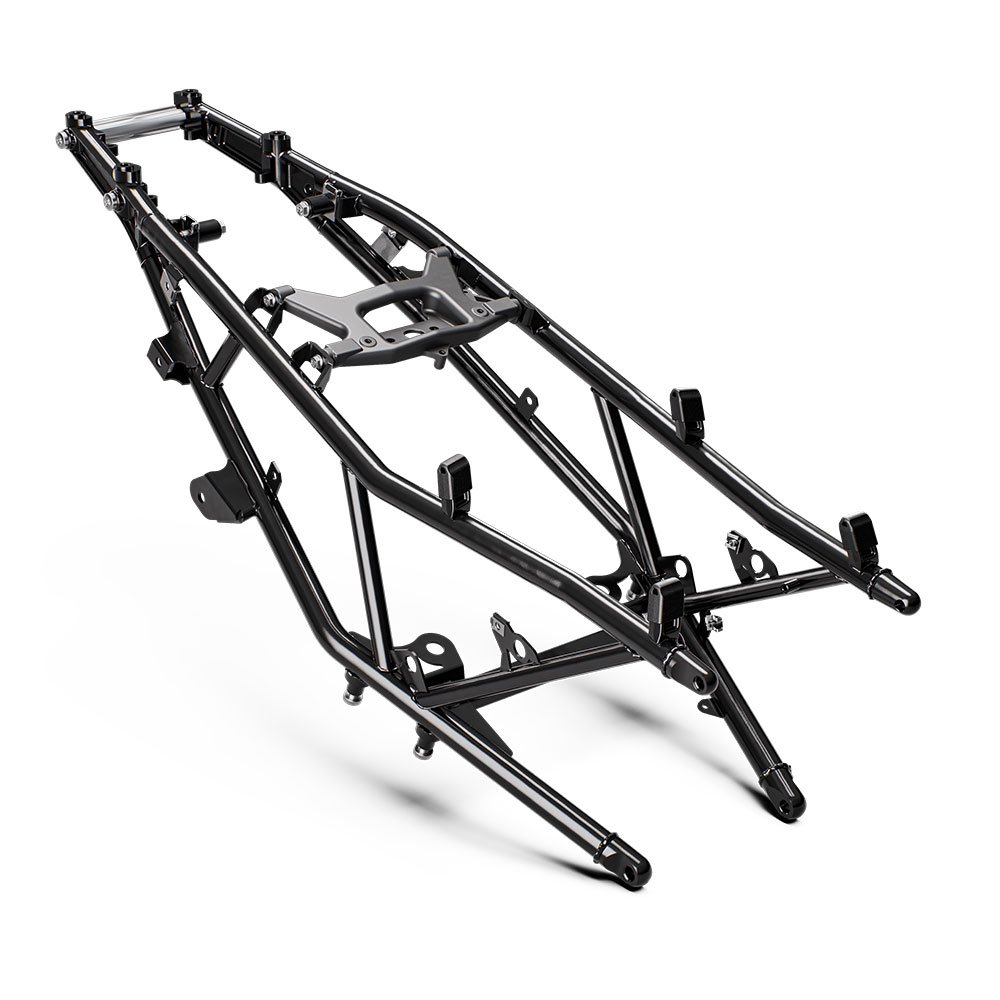 Featuring an even more lightweight and solid construction than its predecessor, the subframe is fully-loaded for adventure. The motorcycle beneath you needs to be built to last. The steel trellis subframe was developed to be compact, lightweight and also strong enough to carry a full load of luggage as well as a passenger under the hardest conditions while extreme adventure riding. |