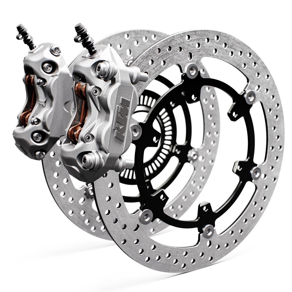 KTM's cornering ABS system allows riders to always use the full power of their brakes while the system adjusts brake pressure to match the lean angle of the motorcycle. This means more predictable braking across a wider range of conditions and scenarios. It can also be turned off for more control in offroad conditions. |