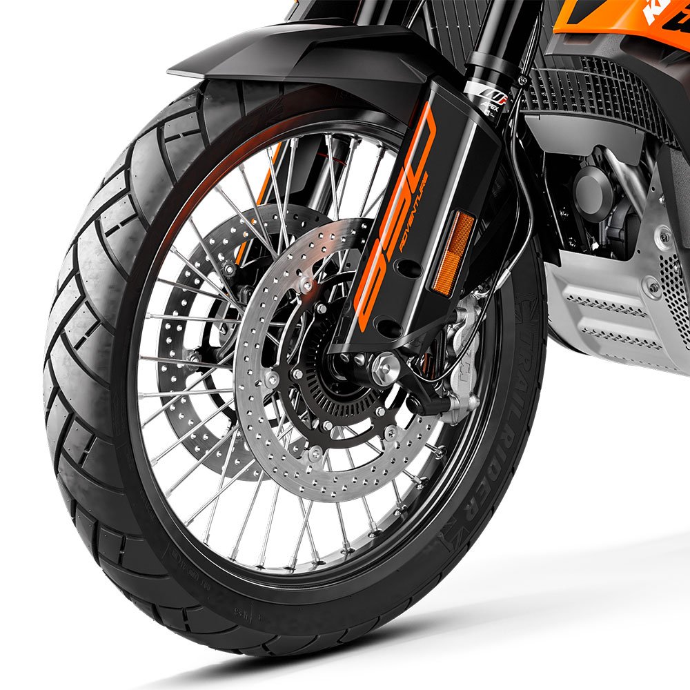 Carve up the streets on your way to your next epic adventure. The spoked 21-inch front and 18-inch rear wheels are specifically developed for KTM ADVENTURE riding and feature new anodized hubs (instead of powder-coated). The heavy-duty and lightweight wheels are tubeless and have the option of TPMS (Tire Pressure Monitoring System). The specially selected Avon Trailrider tires deliver confidence-inspiring long-distance street handling and comfort, yet are still more than capable of exploring trails off the beaten track. |