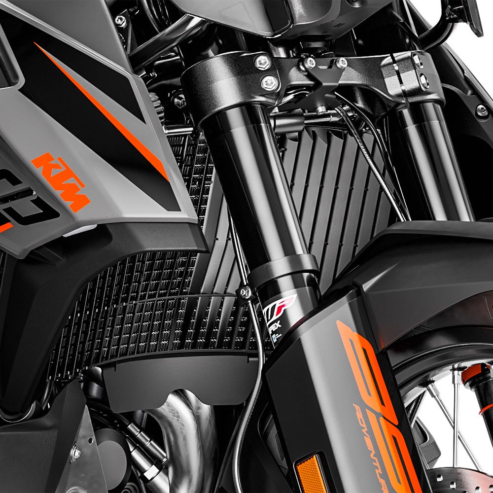 Improved for 2021, the KTM 890 ADVENTURE boasts twin 320 mm diameter brake discs with 4-piston, radially mounted calipers up front, and a 260 mm diameter brake disc actuated by a double-piston floating caliper in the rear providing superior feedback and stopping power. A new stainless steel brake hose on the rear also helps combat brake fade on long downhill sections. The rear brake features new, isolated pistons in the caliper in conjunction with isolation plates between pads and pistons in order to gain more heat stability. In addition, the fitting of the brake hose on the rear caliper is made of stainless steel to reduce heat in the brake hose. |