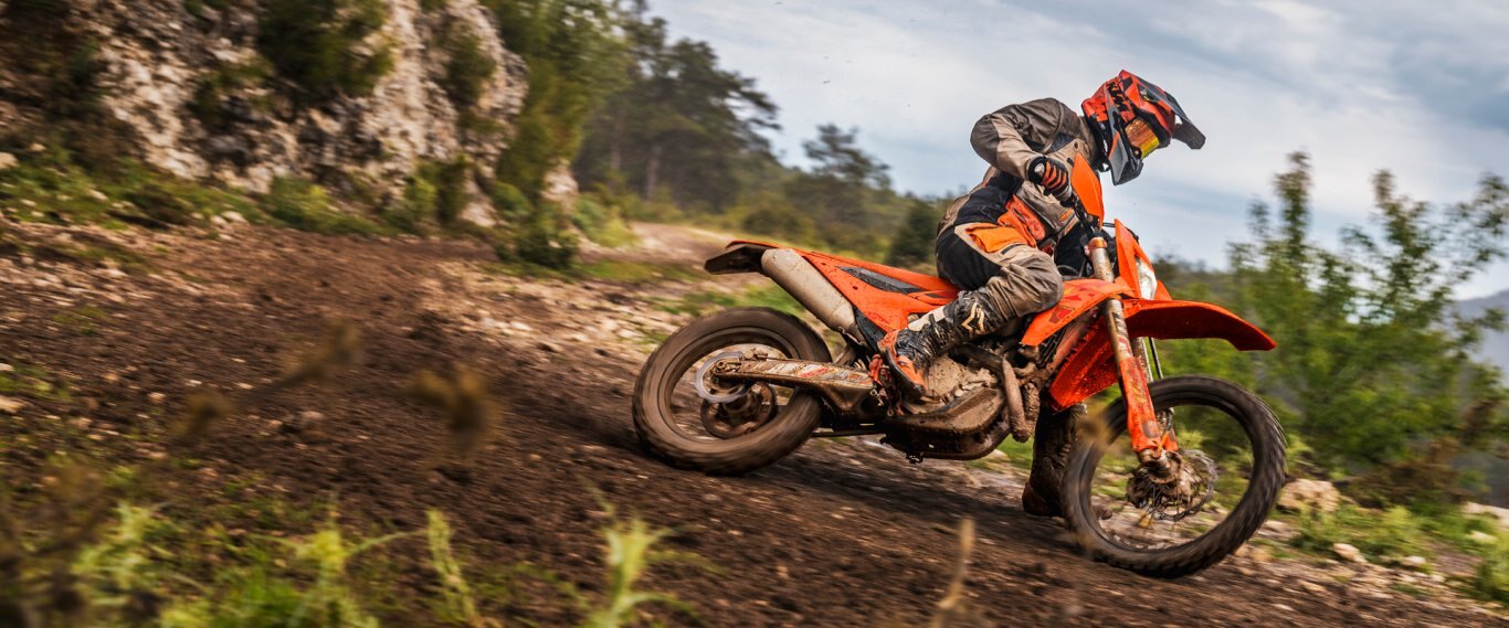 The first KTM bearing the SIX DAYS name tore onto the scene way back in 1996. Almost 30 years later, we're still keeping that legacy alive. All KTM SIX DAYS models receive the full SIX DAYS treatment, from machined orange anodized triple clamps, right down to a solid rear brake disc. Each and every element on a SIX DAYS model is specifically chosen for the job at hand, stamped with a coveted SIX DAYS logo, and let loose to dominate the field.