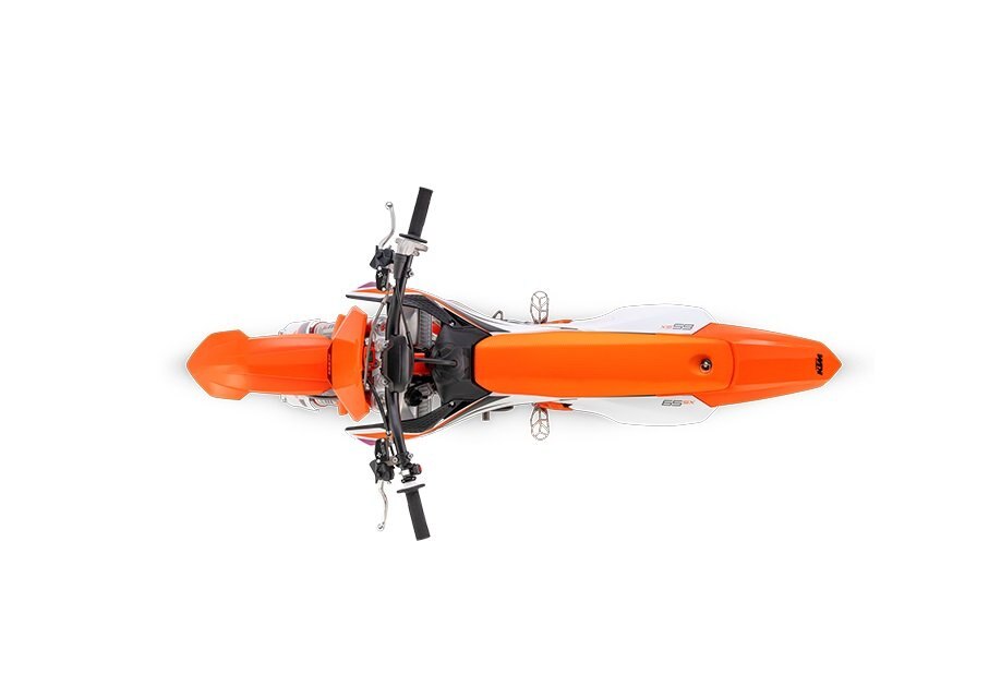 The KTM 65 SX is designed to grow with the little racer, by being height adjustable. Different options were built into the KTM 65 SX construction using scientific statistical data and mannequins. So, finding the right fit for your junior ripper is ultra easy, thanks to height adjustable suspension, handlebar position, subframe, and bodywork, taking the seat height from a low 28.1 in (715 mm), to a taller 29.9 in (760 mm).