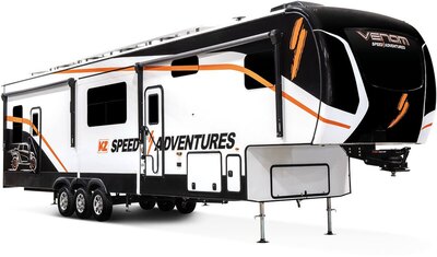 LUXURY FIFTH WHEEL TOY HAULERS Explore in style in the bold, adventurous Venom! Choose from six floorplans, plus two exclusive, limited-edition...
