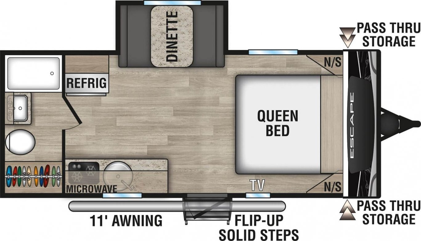 The ultimate adventurer’s RV, Escape is built for campers who want to have some fun. Starting at just over 18' feet and 3,000 pounds, Escape is ready for your next getaway!