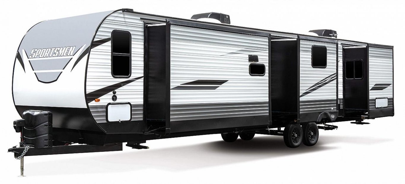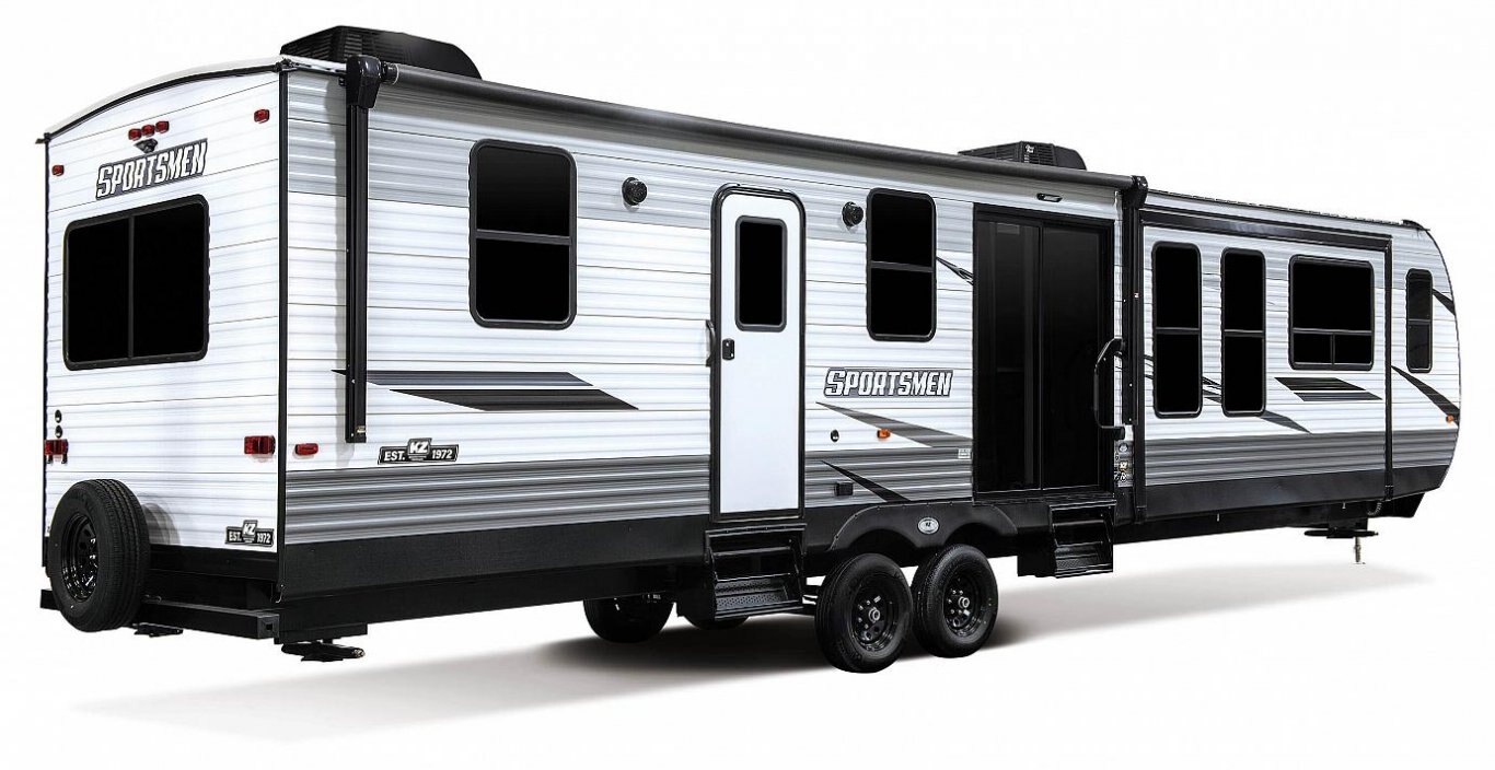 Sportsmen Destination offers floorplans with weights ranging from 8,330 to 9,400 and lengths from 40' 9" to 41' 2".