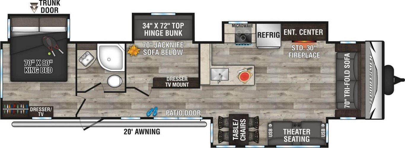 Our Sportsmen Destination Trailer is built for those who want to make their favorite camping spot their home away from home. You will discover ample space for all your must-haves and inviting, modern interiors!
