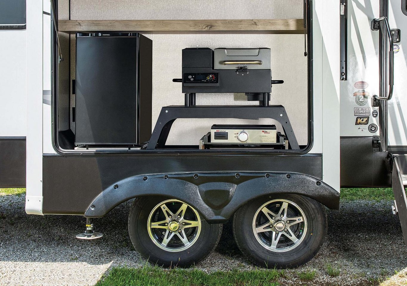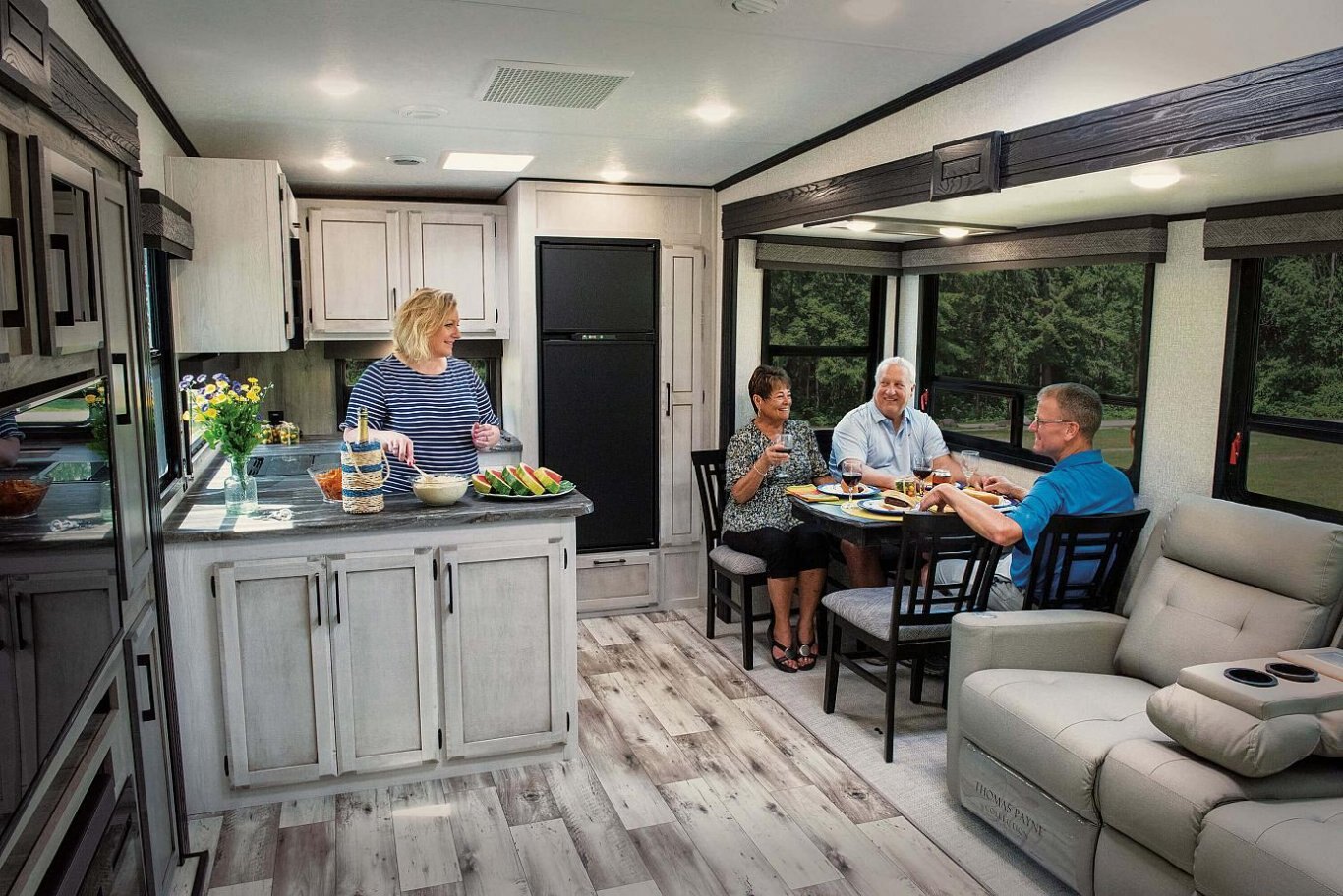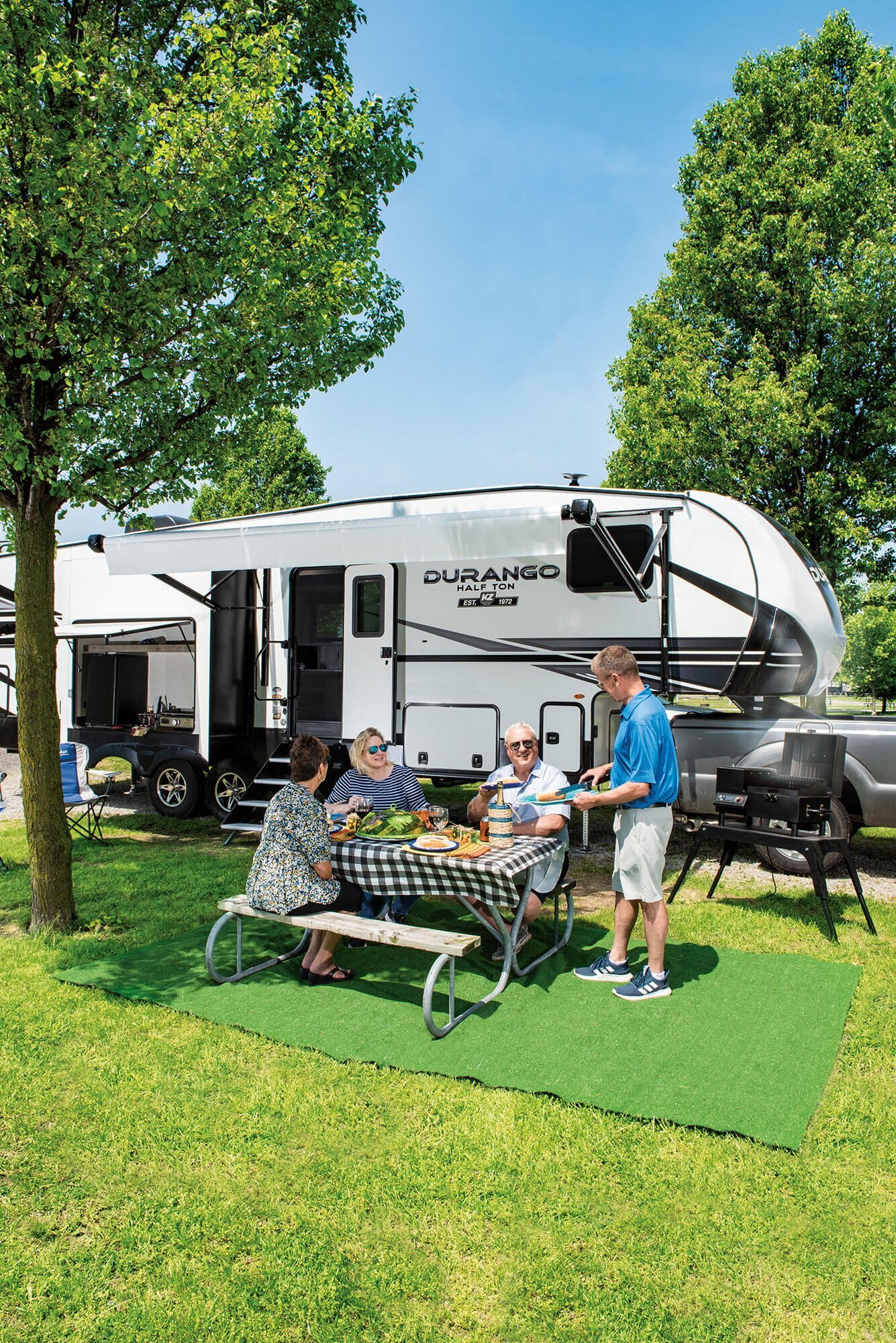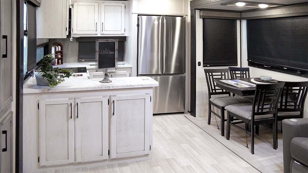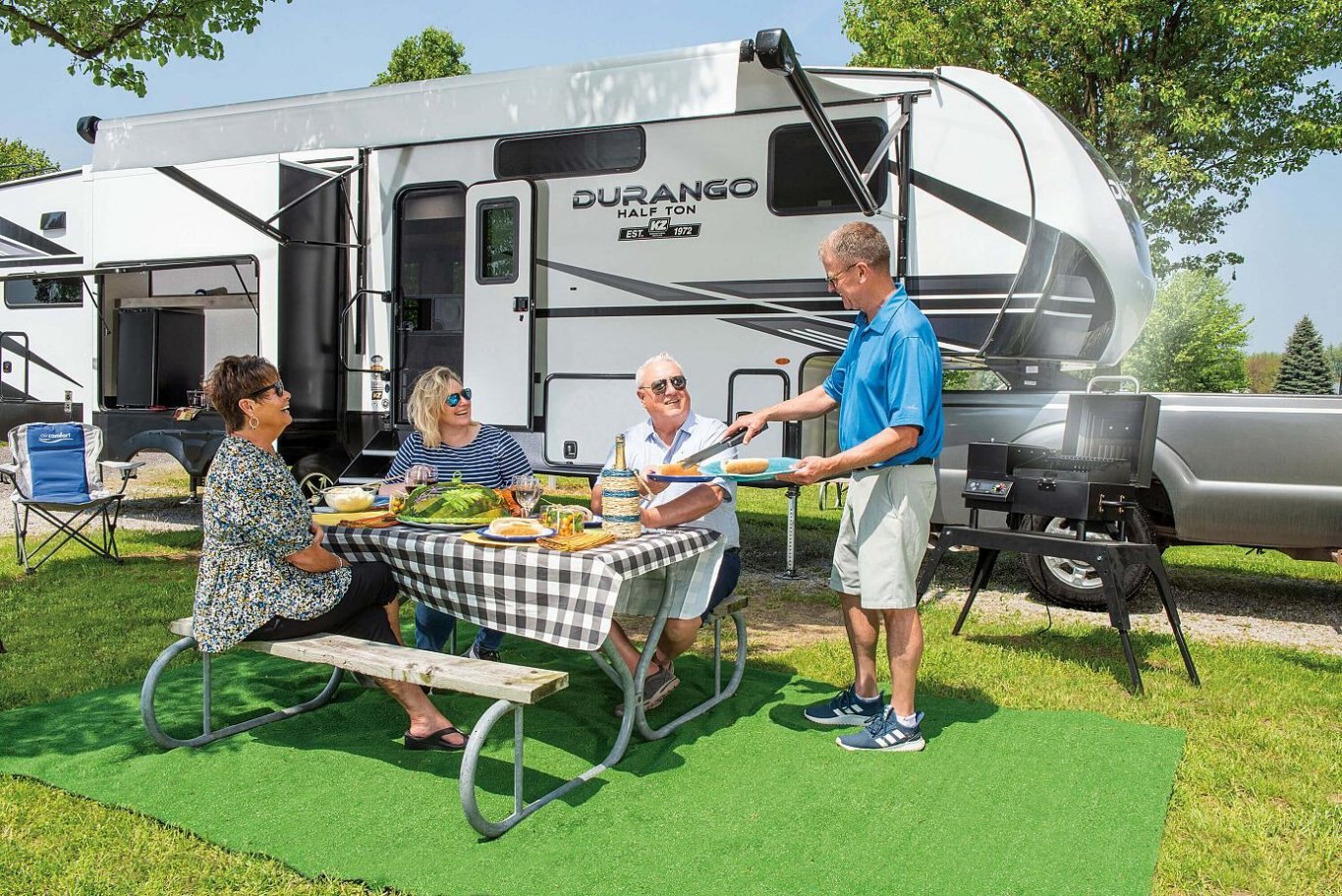 Durango Half-Ton is where lightweight travel meets fifth wheel amenities. Rest and enjoy all the comforts this RV has to offer, from the modern interiors, optional electric fireplace, and additional outdoor kitchen area (select models).