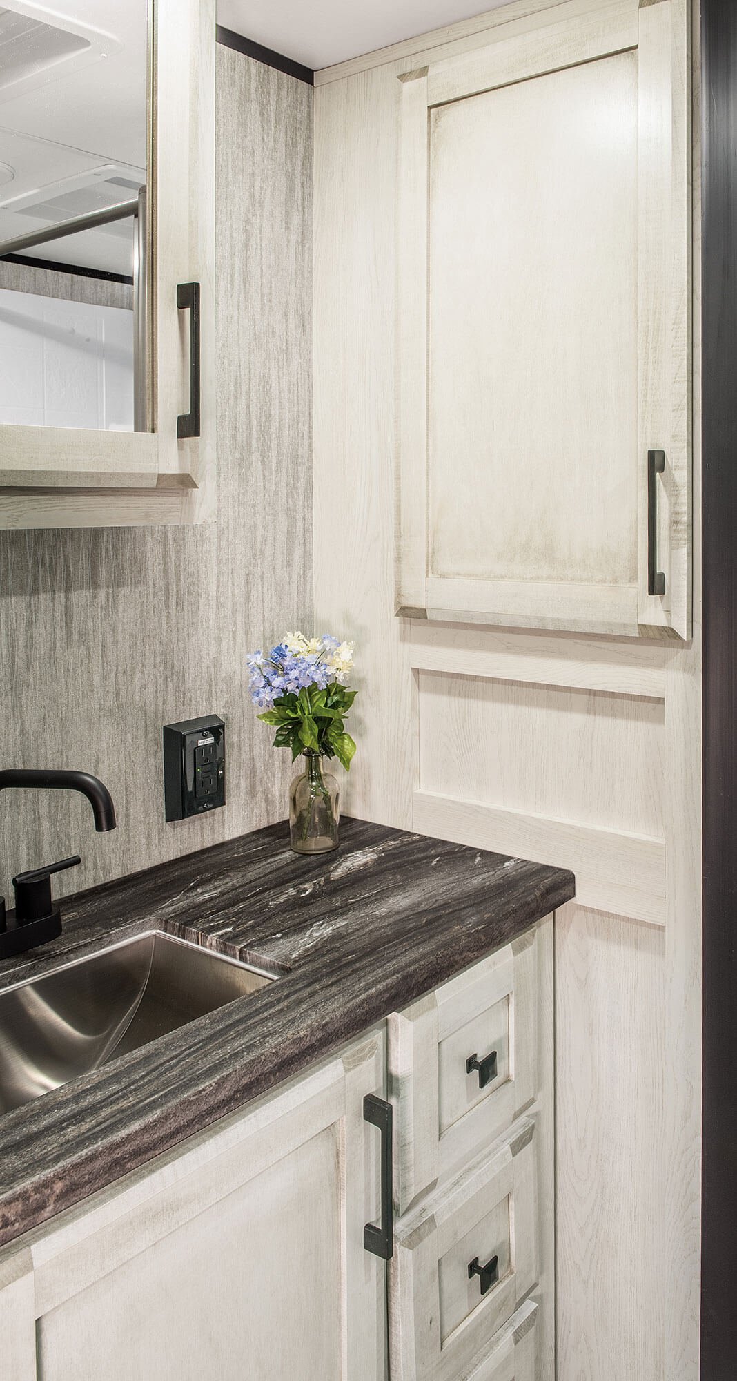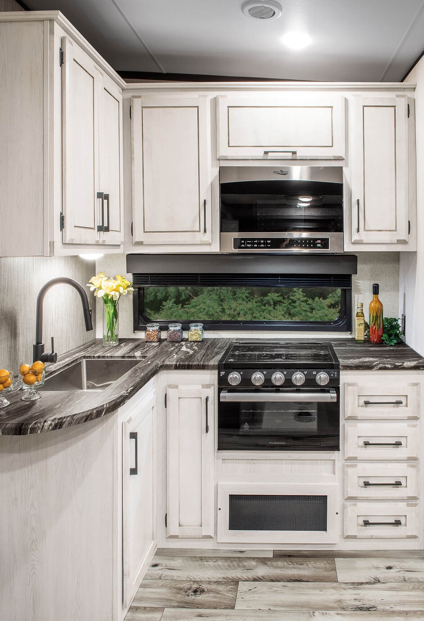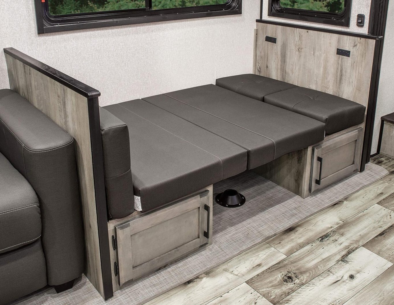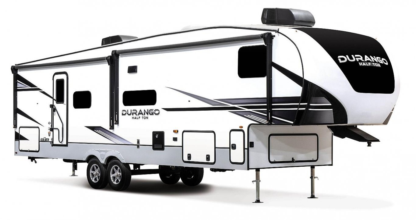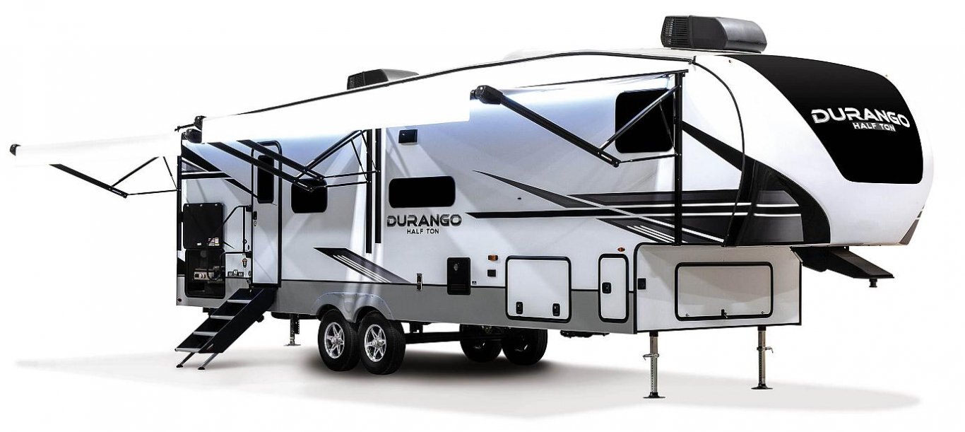 Durango Half-Ton is where lightweight travel meets fifth wheel amenities. Rest and enjoy all the comforts this RV has to offer, from the modern interiors, optional electric fireplace, and additional outdoor kitchen area (select models).