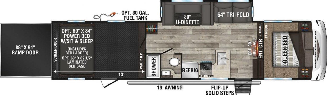 Sportster toy haulers are for those looking to have a little more fun! The Sportster allows you to take your favorite toy anywhere. If you’re looking for some serious entertainment, the Party Patio Package adds extra outdoor space to entertain guests!