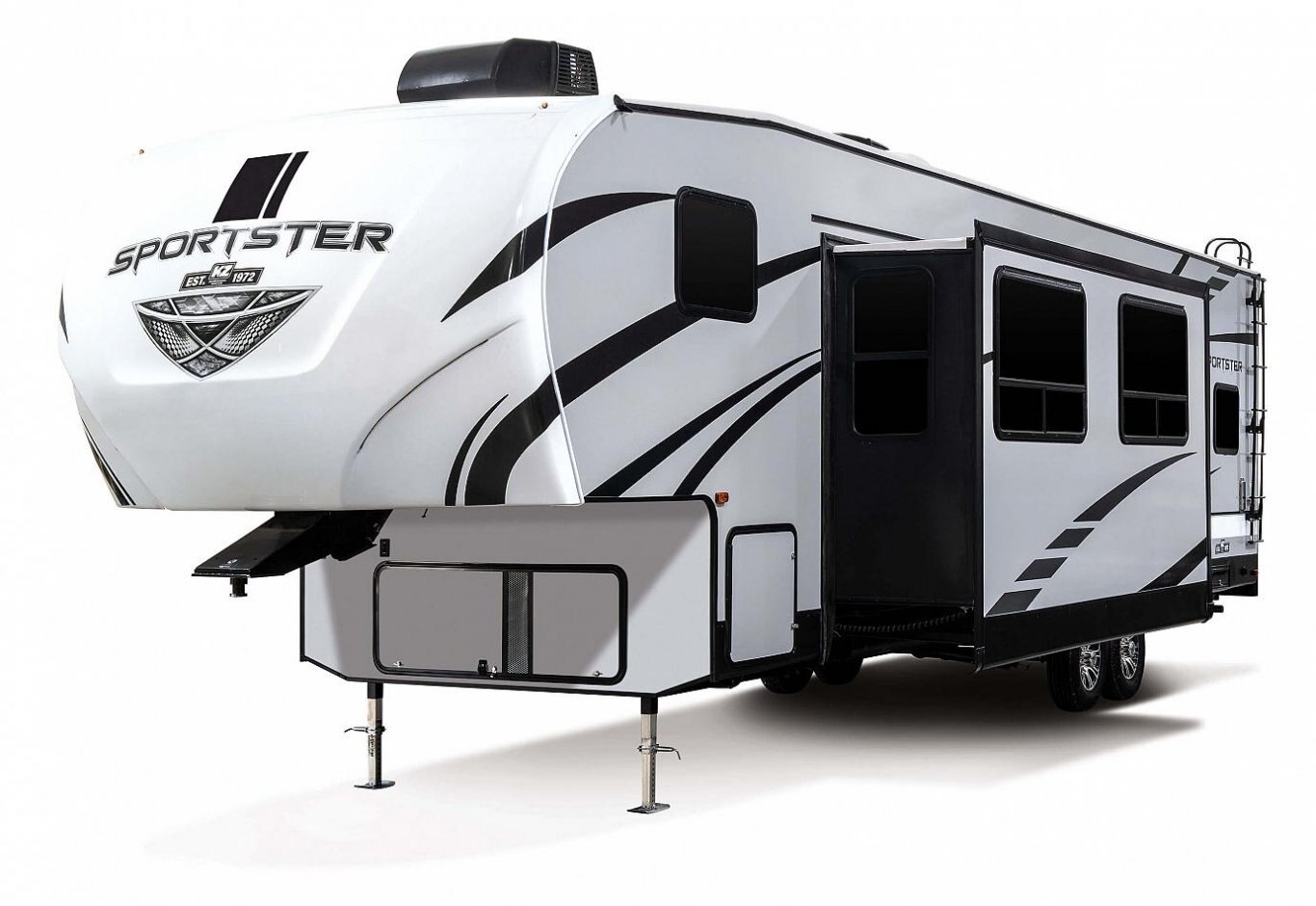Sportster offers travel trailer floorplans with weights ranging from 6,600 to 8,070 and lengths from 30' 8" to 35' 10".