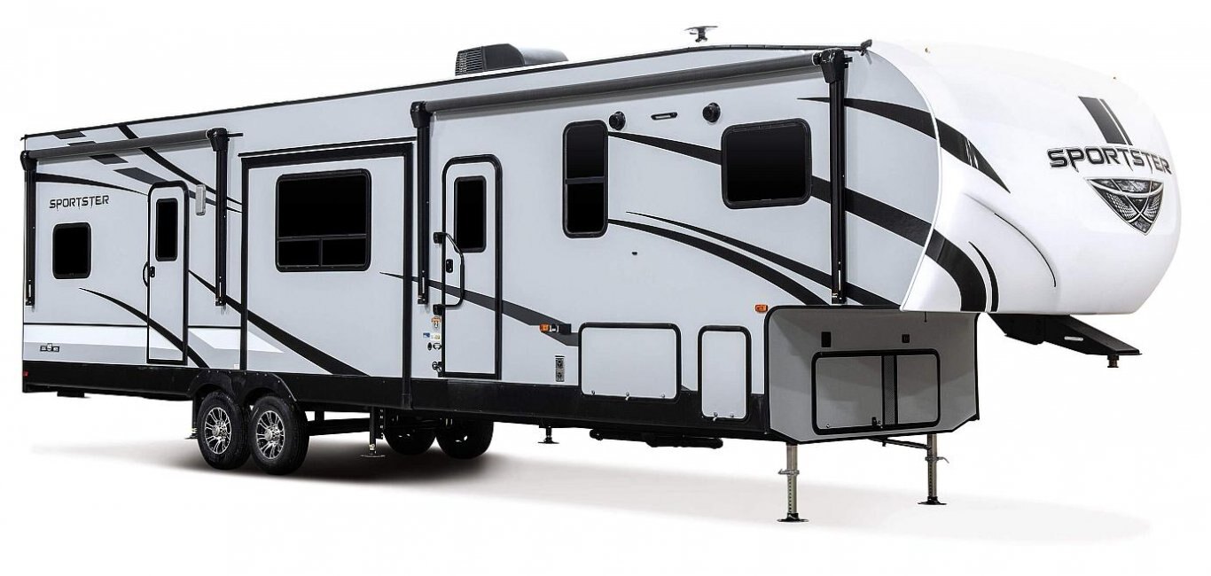 Sportster offers travel trailer floorplans with weights ranging from 6,600 to 8,070 and lengths from 30' 8" to 35' 10".