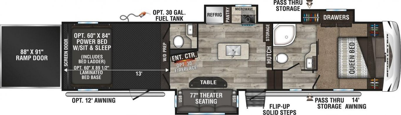 Sportster toy haulers are for those looking to have a little more fun! The Sportster allows you to take your favorite toy anywhere. If you’re looking for some serious entertainment, the Party Patio Package adds extra outdoor space to entertain guests!