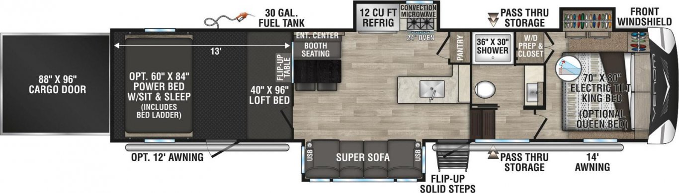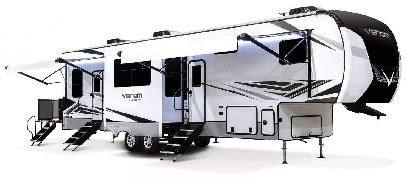 Venom V-Series offers floorplans with weights ranging from 12,540 to 13,420 and lengths from 40' 10" to 43' 8".