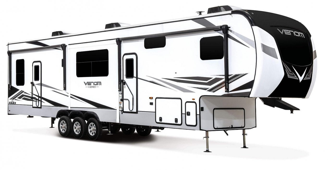 Venom V-Series offers floorplans with weights ranging from 12,540 to 13,420 and lengths from 40' 10" to 43' 8".