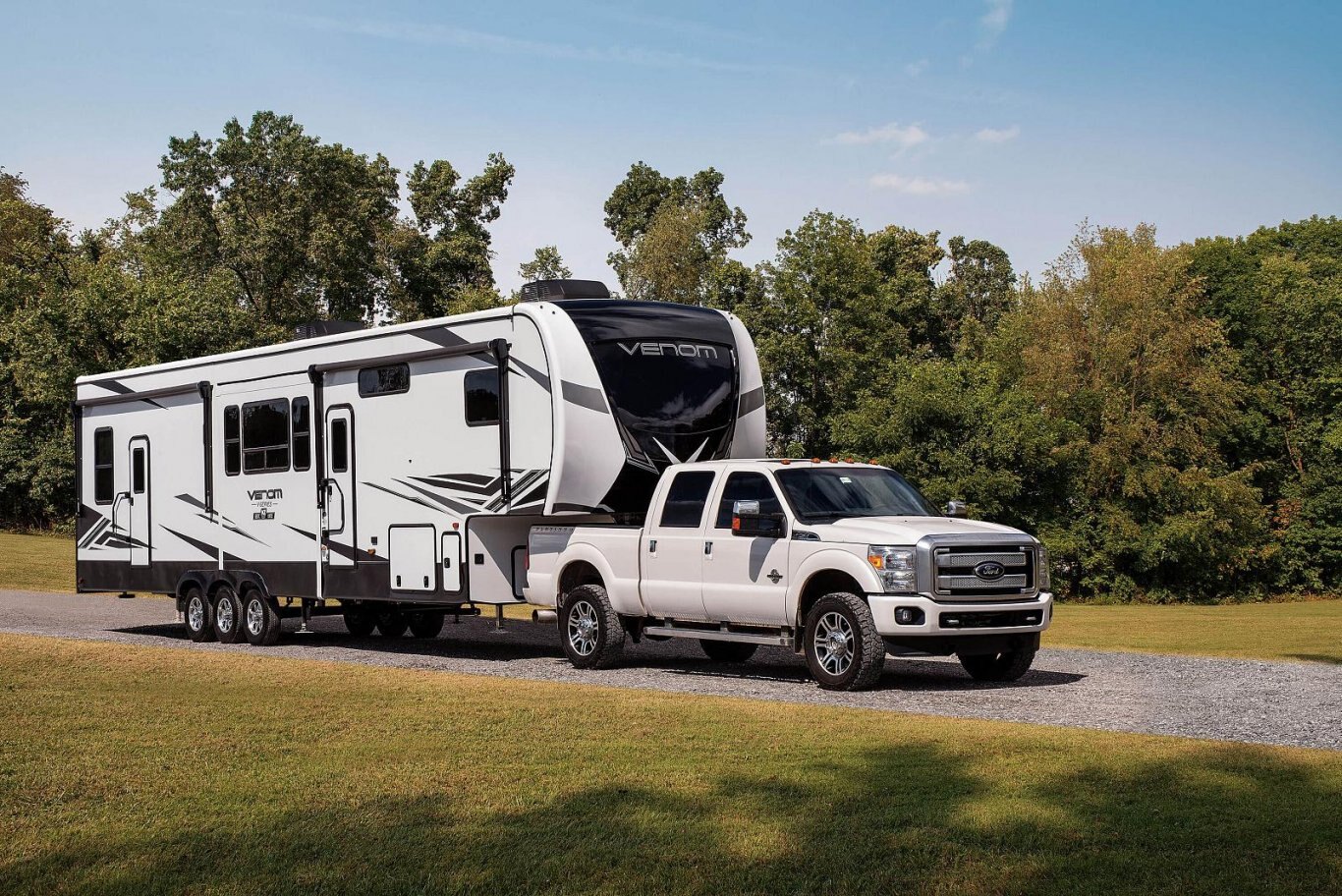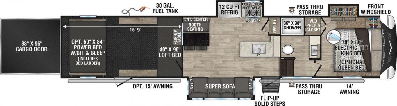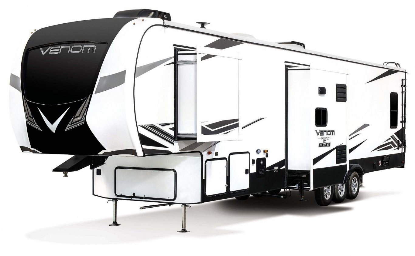 Venom V-Series offers floorplans with weights ranging from 12,540 to 13,420 and lengths from 40' 10" to 43' 8".