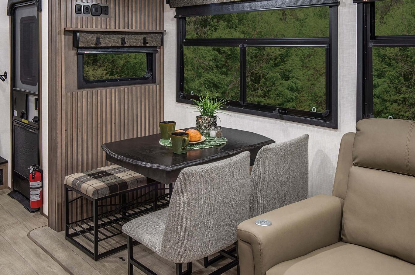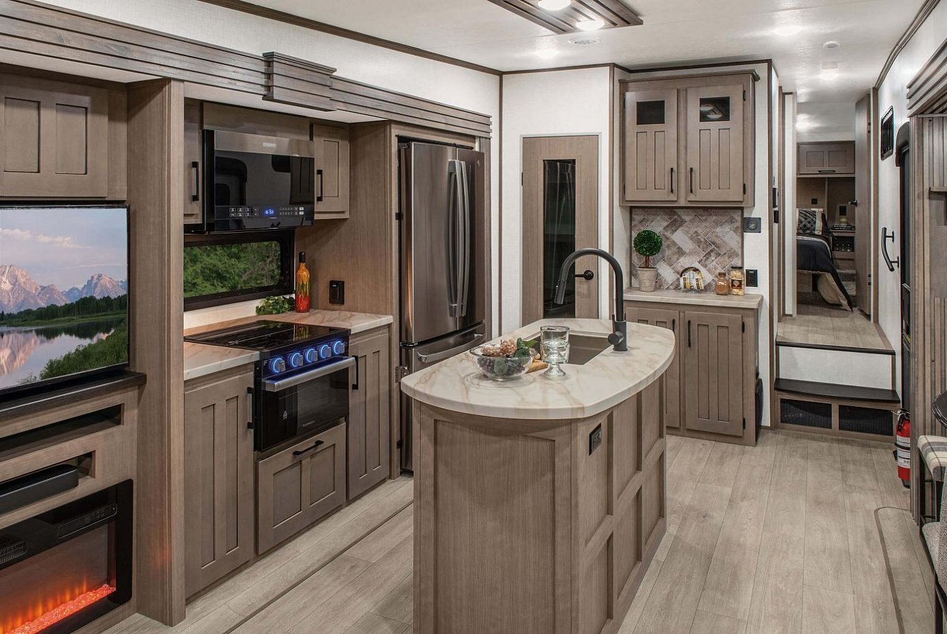 Durango Half-Ton is where lightweight travel meets fifth wheel amenities. Rest and enjoy all the comforts this RV has to offer, from the modern interiors, optional electric fireplace, and additional outdoor kitchen area (select models).