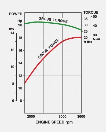 18.5 hp (13.8 kW) at 3,600 RPM
