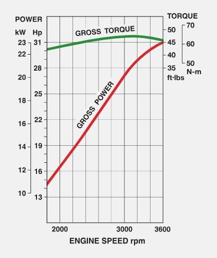 31.0 hp (23.1 kW) / 3600 rpm