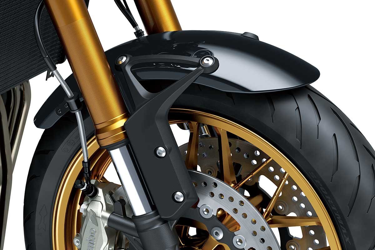 The strength of Kawasaki’s cutting-edge electronics has always been the highly sophisticated programming that, using minimal hardware, gives the ECU an accurate real-time picture of what the chassis is doing. Kawasaki’s proprietary dynamic modeling program makes skillful use of the magic formula tire model as it examines changes in multiple parameters, enabling it to take into account changing road and tire conditions.