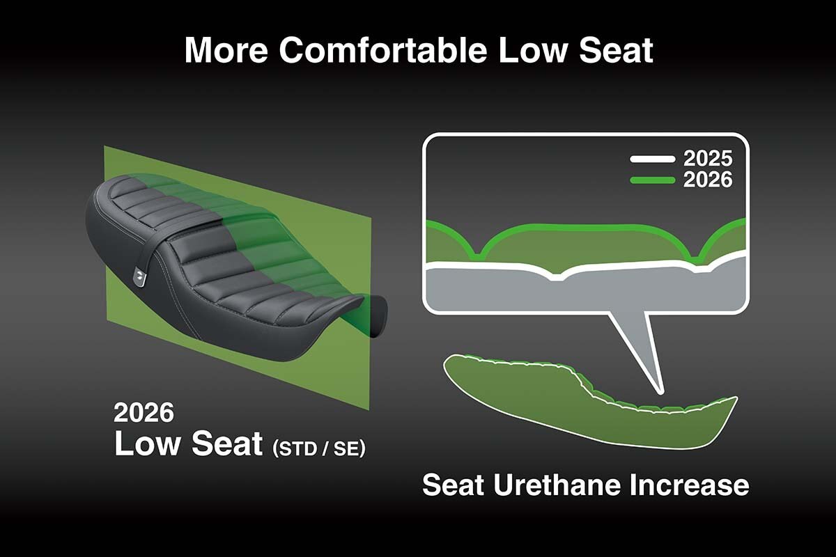 ERGO-FIT is an interface system designed to allow riders to find their ideal riding position. Various points of the chassis interface (the handlebar, footpegs and seat, etc.) can be adjusted through a combination of interchangeable parts and parts with adjustable positions. This enables a wide range of riders to find a riding position that offers both comfort and control. Feeling at one with their machine, they will be able to experience how Kawasaki machines are fun and rewarding to ride.