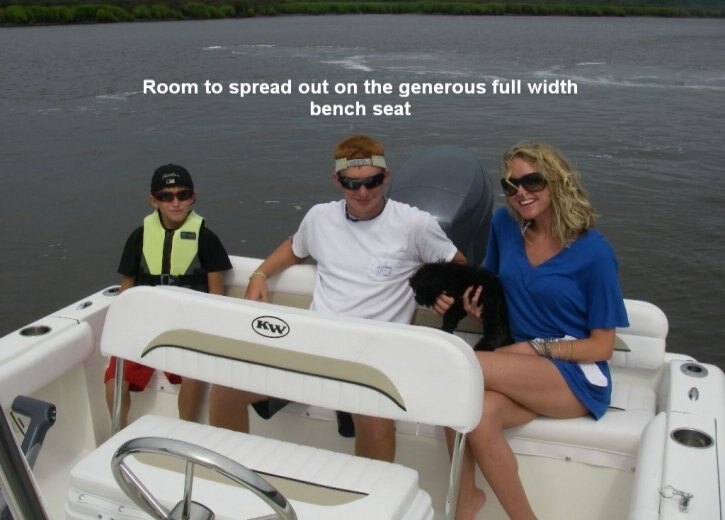 The 189FS now comes with a porta potty room under the console.This is a family oriented center console with less emphasis on hard core fishing and more on the water sports many families are enjoying on the water today, such as skiing, tubing, camping, or just being out on the waterways. It features more seating, cup holders, and storage to accommodate all family members, but we never forget the fishermen. It also includes molded in rod racks and a generous live well. The bench seat in the rear features removable cushions to convert it to a nice fishing deck as well. This boat is as well rounded as the modern family.