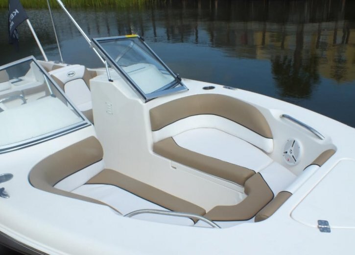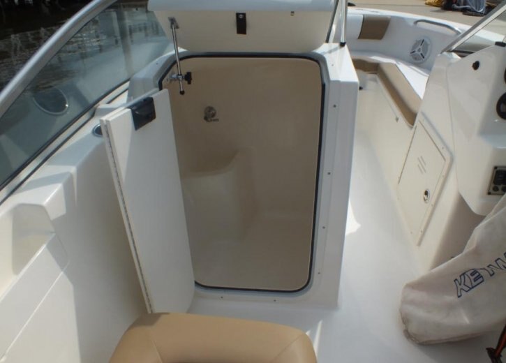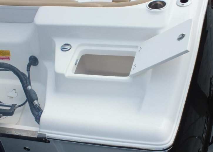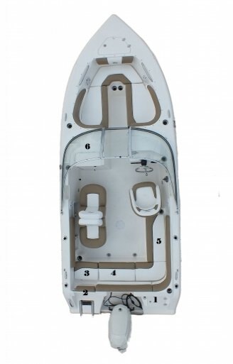 1) Easy access rear storage locker 2) Easy entry door and ladder 3) Dry storage compartment 4) Live well under seat 5) Ski locker 6) Potty room |