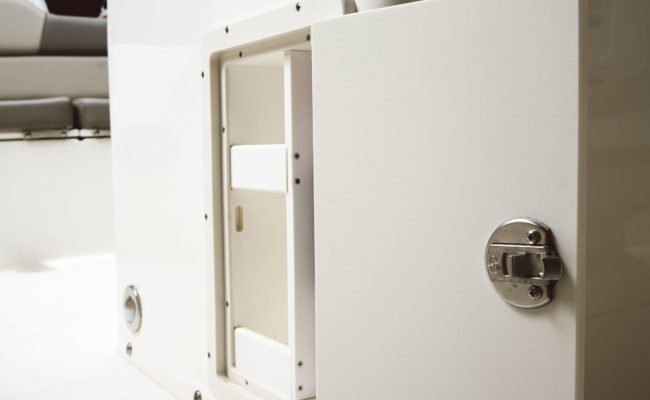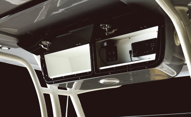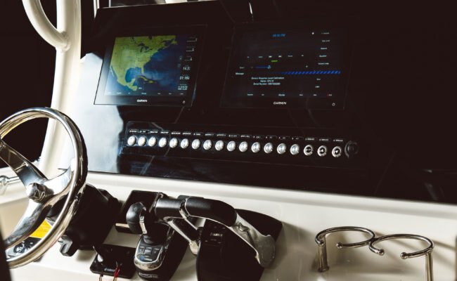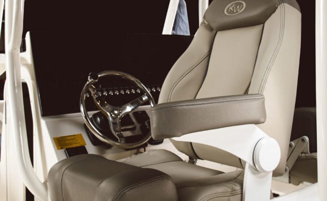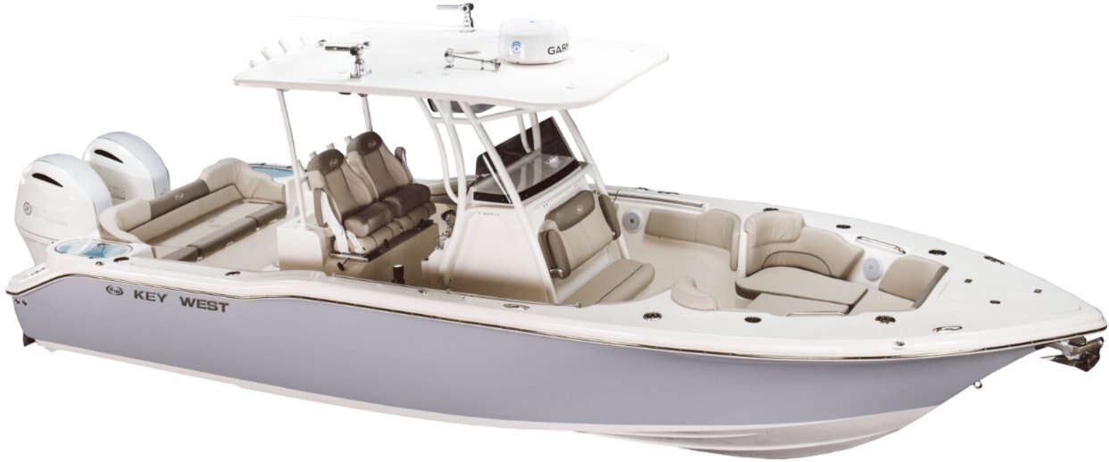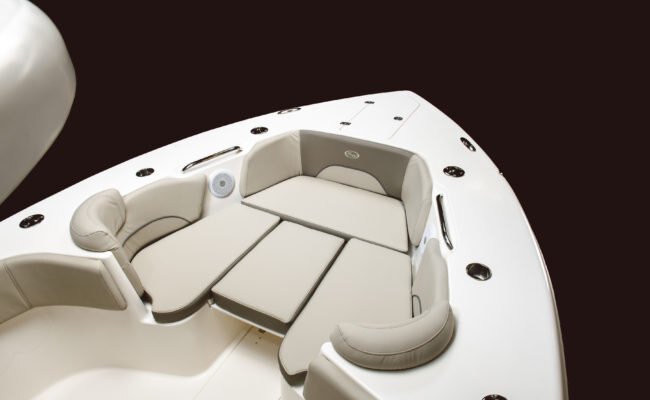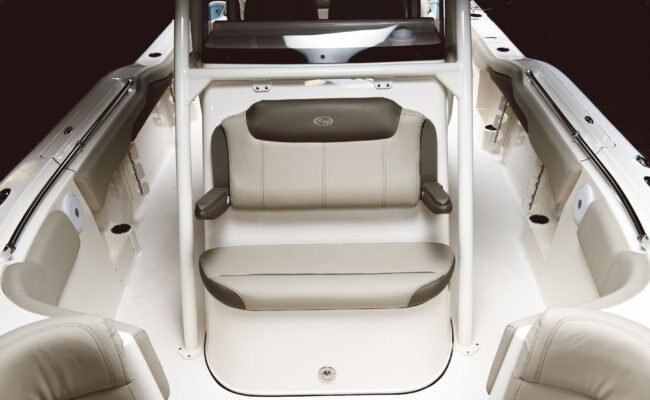 This model is full of features that enhance the design and performance, providing the active family with all they could ask for on the water. Some of the standard features include an under deck windlass, hardtop, side entry door with hidden ladder, and power assist steering. It still remains a highly fishable vessel with features like dual live wells, 22 rod holders, and, in addition, horizontal storage racks under the gunnels to hold your longest saltwater rods.