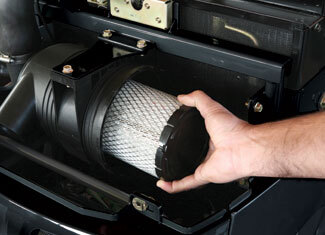 A dual stage cartridge protects the engine from dust and dirt resulting in prolonged engine life. Located conveniently at the front of the engine, servicing of the cartridge is simple.