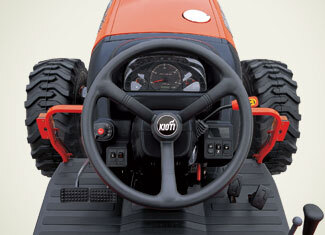 With the push of a lever, the steering wheel tilts toward the operator. When exiting the tractor, it can be easily moved out of the way.