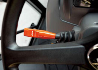 The standard power steering minimizes the effort required to make tight, repetitive turns. The steering wheel tilts with the simple push of lever, allowing easy adjustment to fit the operator needs.