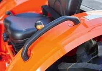 The fender grip, available on both sides, makes it easier get in and out of the tractor.
