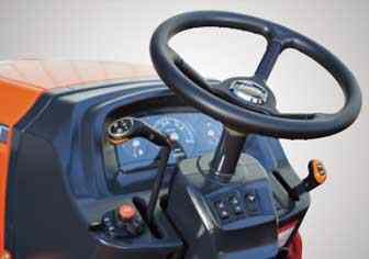The standard power steering minimize the effort required to make tight, repetitive turns. The steering wheel tilts with the simple push of lever, allowing easy adjustment to fit the operator needs.