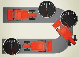 The optional turn assist control kit will drop the engine rpm by 10% automatically when turning sharply. This feature will allow for more precise work and reduces fuel consumption during sharp turns