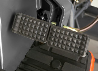 A single pedal controls traveling speed/direction and offers clutch-free forward and reverse movement. This frees up the operators hands for better steering and implement control.
