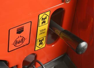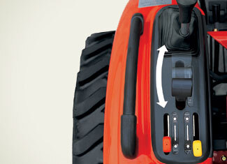 KIOTI's position control lever provides smooth operation of the 3-point hitch, is designed to allow for an infinite number of positions/heights, and comes with a convenient stop for applications that require a fixed lift point.