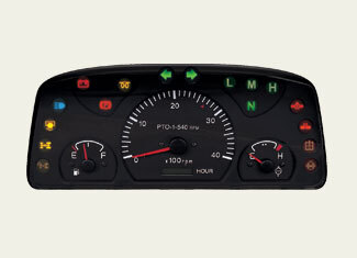 The operator can check important instrumentation at a glance with an easy-to-see tachometer, hour meter, fuel temperature gauge, and battery charge lamp.