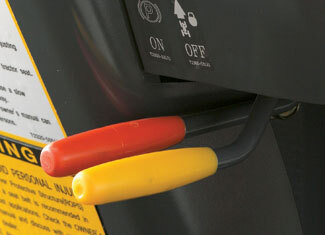 Conveniently located parking brake (red) and cruise control (yellow) levers are in easy reach of the operator. Cruise control is only available on the CK35 HST model.