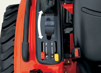 KIOTI's position control lever provides for the smooth operation of the 3-point hitch. It is designed to allow for an infinite number of position heights and comes with a convenient stop for applications that require a fixed lift point.