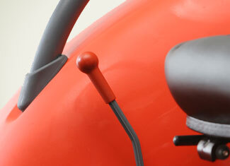 With the push of a lever, the steering wheel tilts toward the operator while seated and can be moved out of the way when exiting the tractor.