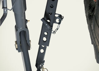 The multiple position stabilizer adjusts lift arms to a wide range of attachments and allows for easy adjustments based on the job at hand.